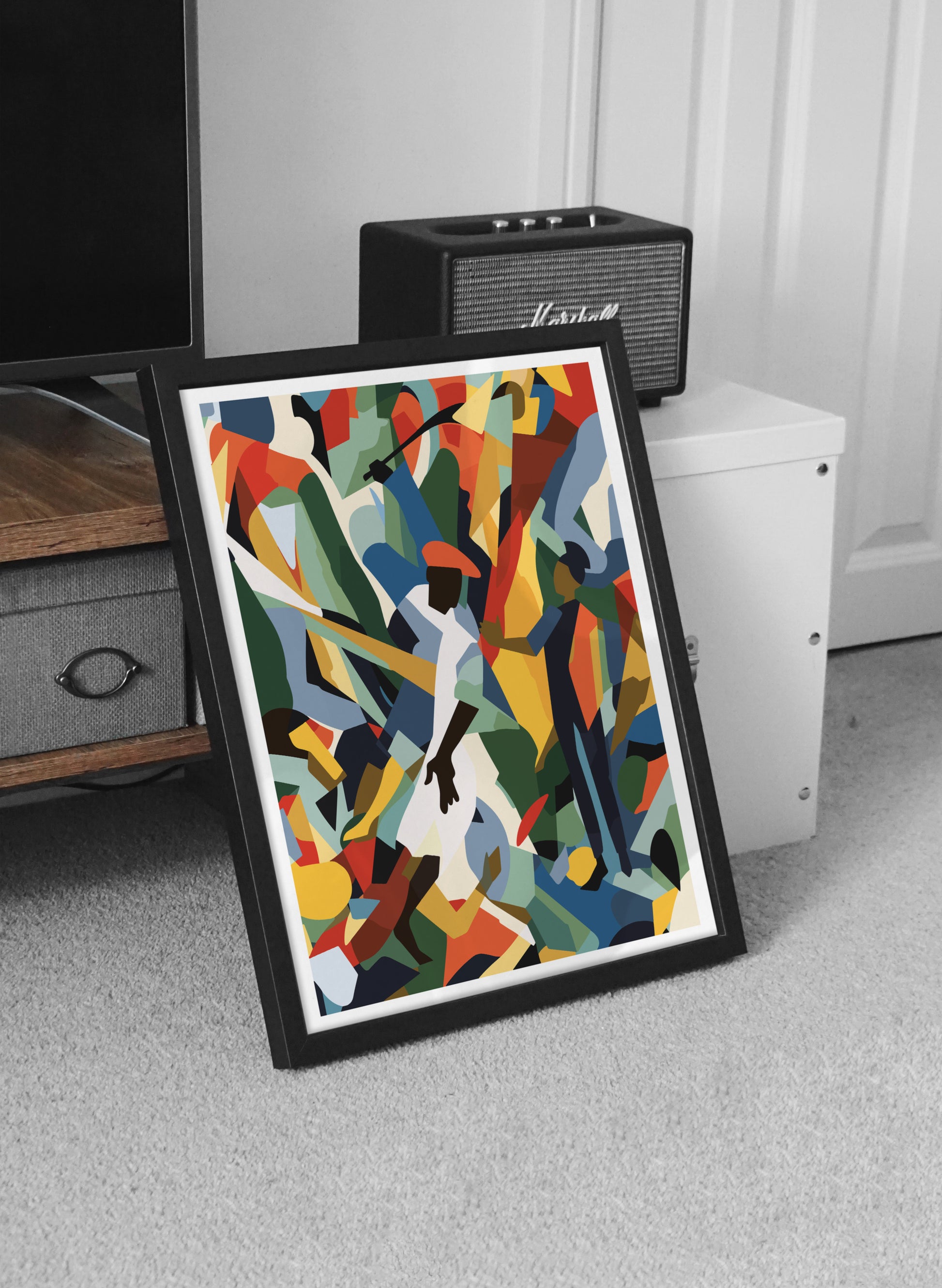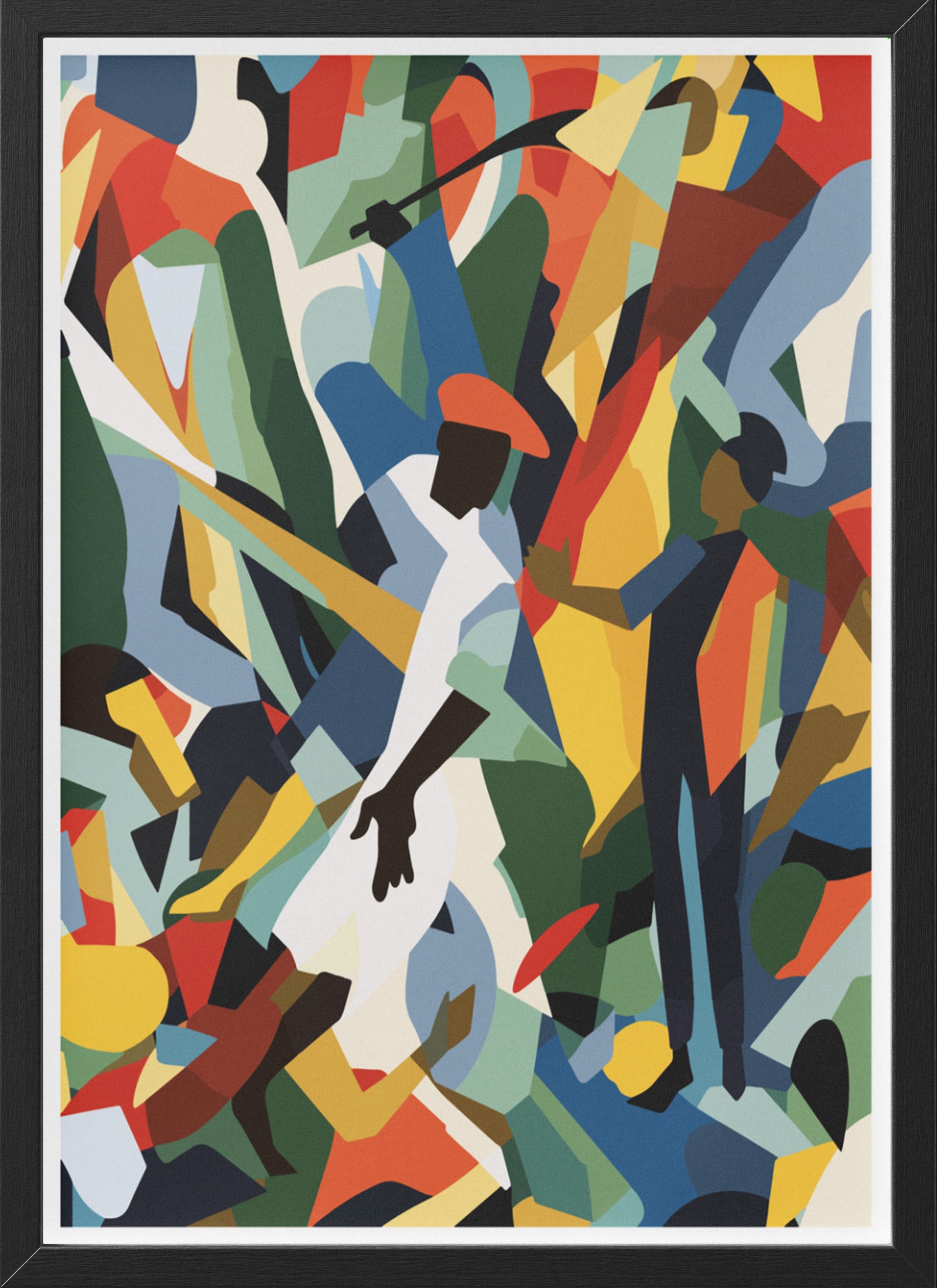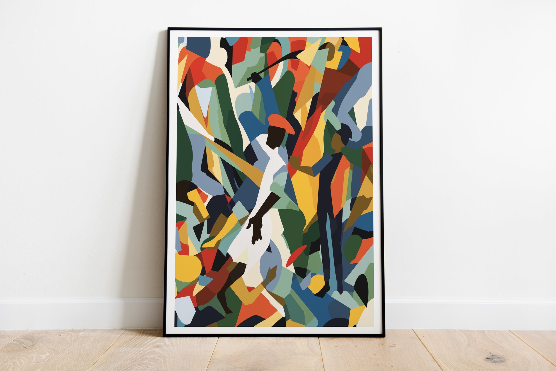 Celebrate culture, movement, and community with this striking African American Abstract Poster. Inspired by the energy of social realism and Harlem Renaissance themes, this artwork brings rhythm and narrative into any space — perfect for living rooms, studios, or cultural settings.