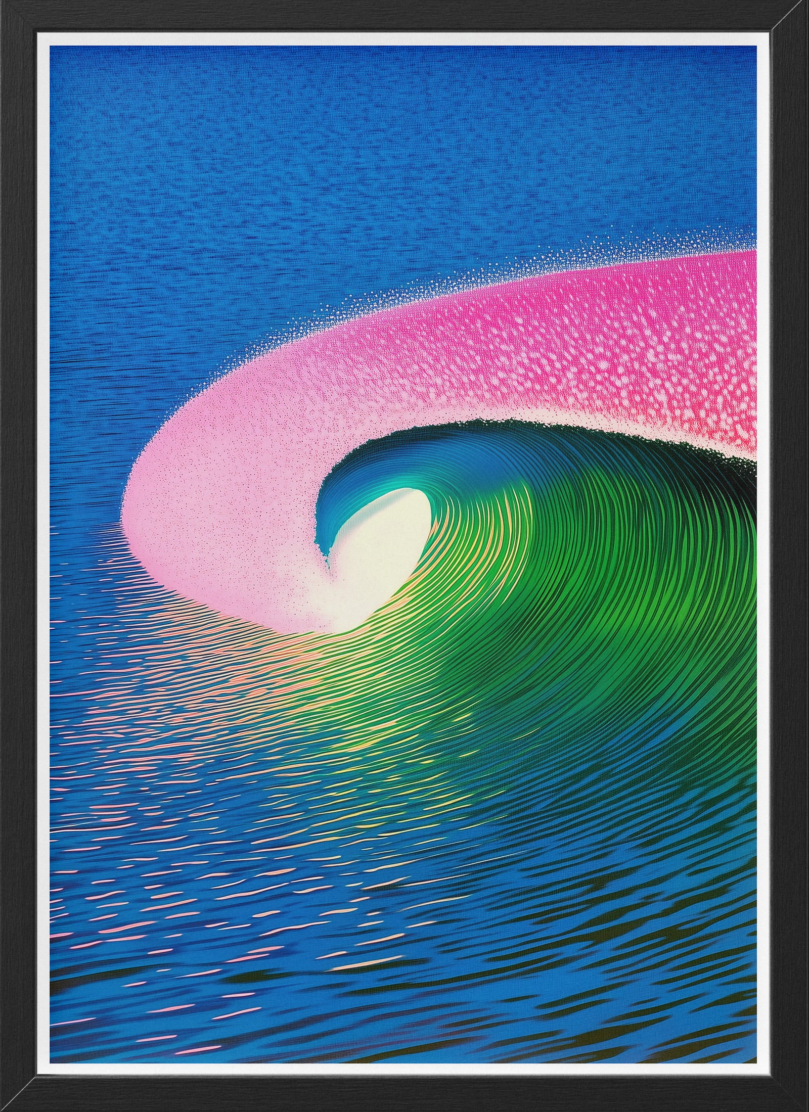 This vibrant surf wave poster captures the beauty of nature through a surreal lens—where lush greens, radiant blues, and unexpected pinks collide in a hypnotic curl. Designed for dreamers and beach lovers, it brings an energetic calm to your space.