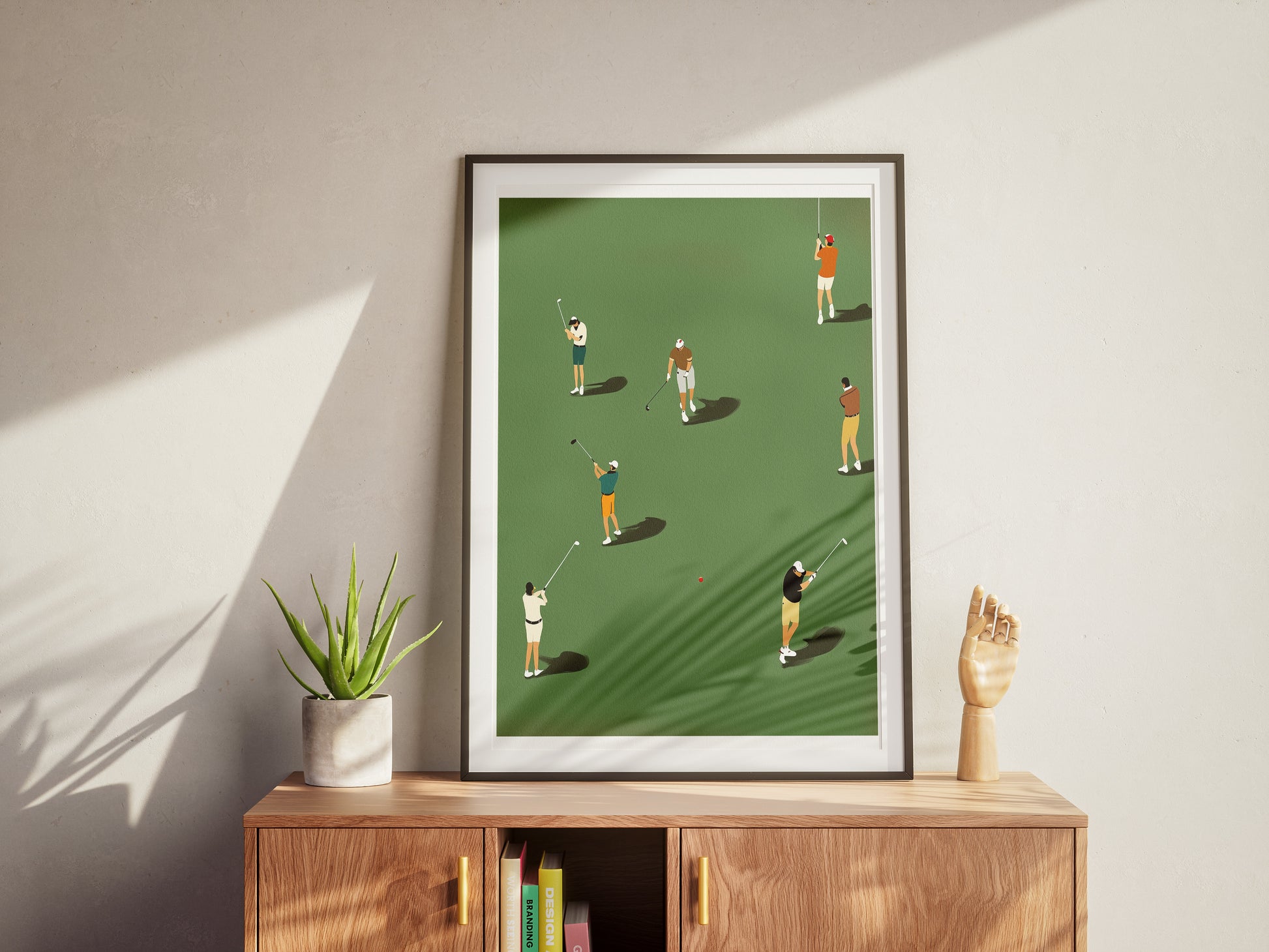 This clean and modern golf illustration captures the elegance of the sport with minimal detail and bold composition. Perfect for golf lovers, Father's Day gifts, or anyone who appreciates minimalist decor, this print adds a touch of calm focus to any wall.