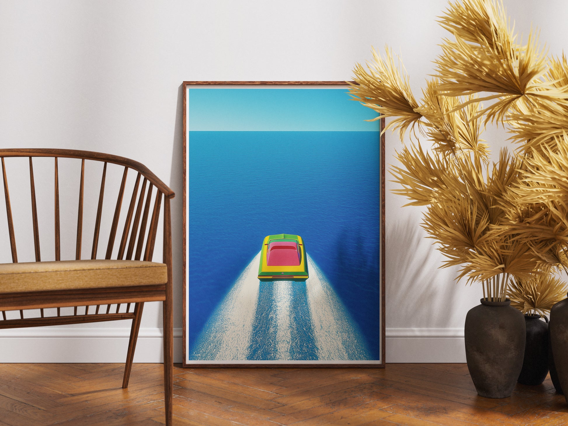 Minimalist Speedboat Poster | Isometric Ocean Illustration Wall Art